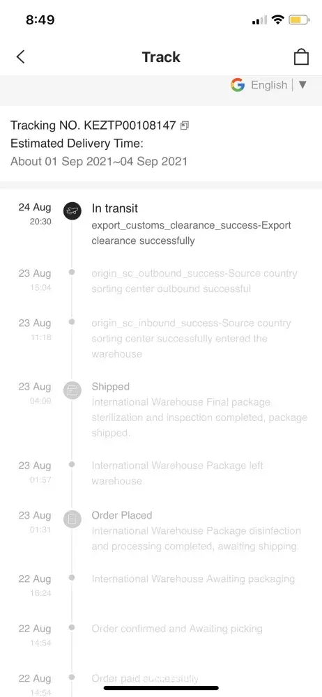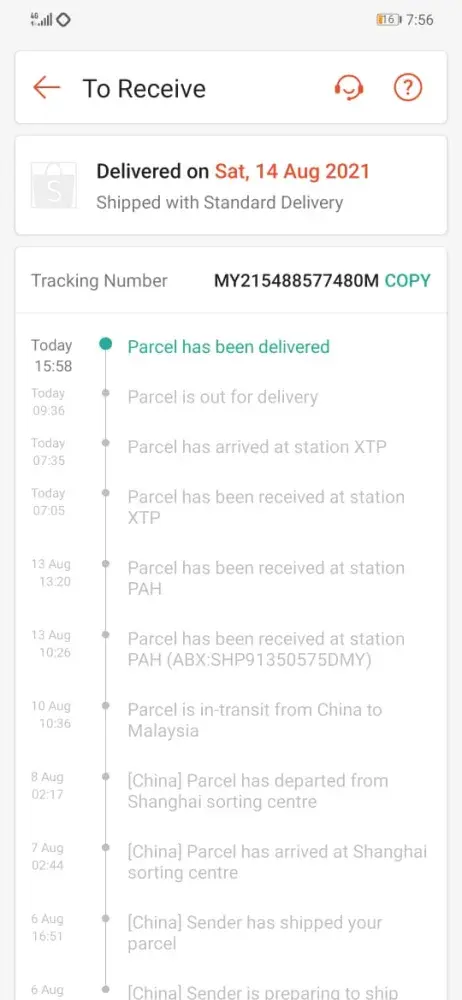 20/08/2021) didn't received yet. I hope that abx can send my parcel out asap. Thank you.