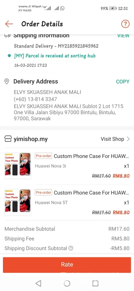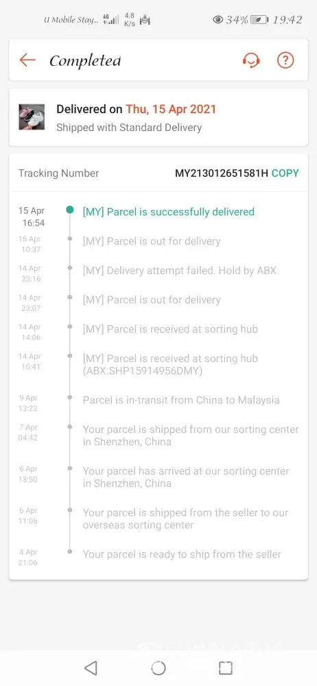 Jun 11, 2021 03:38 PM - Delivery completed (Kota Kinabalu - Sabah)