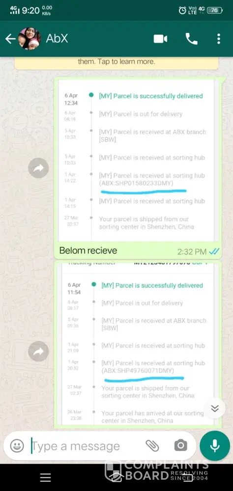 My mum bought a clothing on Lazada with ABX being the delivery partner, tracking no. LZXLA0001316804. The tracking shown the package was delivered in 18th Mar, but we didn't received the package or any form of inform from ABX. Called the ABX on 26th Mar, but the ABX driver claimed already delivered the package, where the one we received was another order's package. We're suppose to get 2 package on 18th Mar, but we only received 1 out of 2 packages.