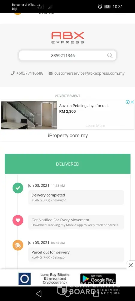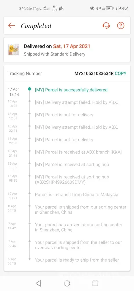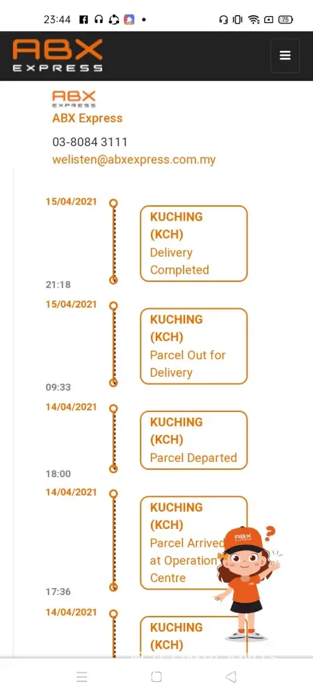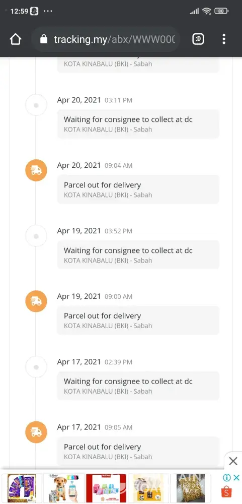 My parcel has arrived at ABX branch tuaran (BKI) on 17/04/2021 but until today 23/04/2021 i have not received my parcel. I called and WhatsApp to followup yesterday and asked why my parcel out of delivery from 17/04 until 23/04 and they said need to wait the runner. I hopeless because ABX took so long to delivery the parcel to me, for information this happened many times.