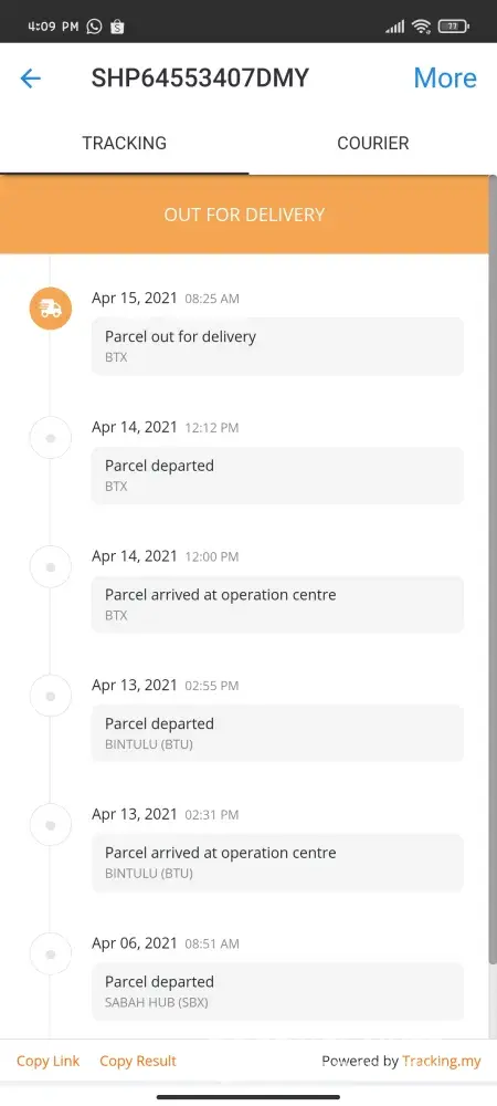 Jun 11, 2021 06:55 AM - Parcel out for delivery (Kota Kinabalu - Sabah)