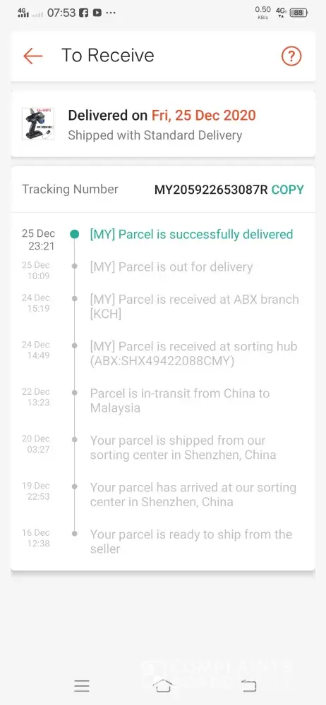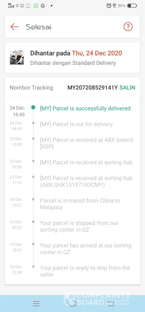 My tracking number shx93123365cmy stated it delivered on 28 dec 2020 even I still didnt received any parcel from abx express courier