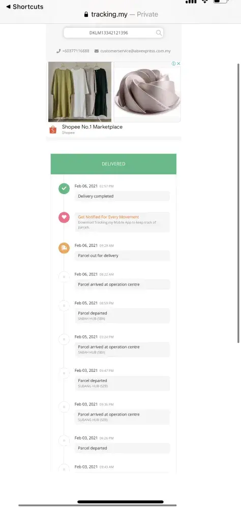 I had two parcels from shopee. Two of my parcels MY2009254296586 and MY205356728071V had reached abx express sibu branch on 4/1/2021. Up till now (9/1/2021), I did not receive any of my parcels. Today when I traced my parcels, it was written items successfully delivered, and yet I didn't receive any!