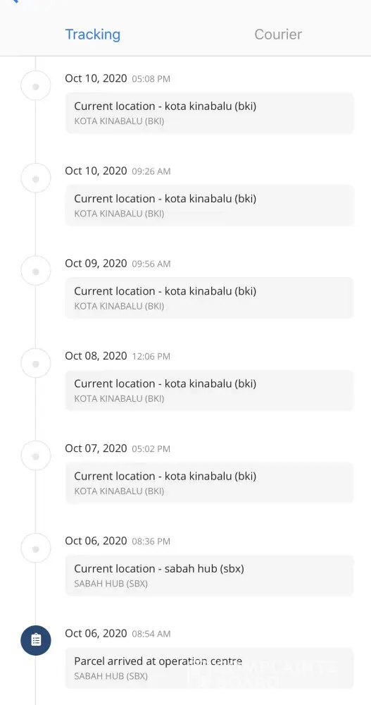Salah satu dari parcel saya sudah sampai di kota kinabalu dari 1 november 2020, tidak di update pergerakan parcel sampai ke hari ini (10november2020). Saya mahu anda perbaiki perkhidmatan anda. Sekurang-kurangnya update di mana keberadaan parcel.