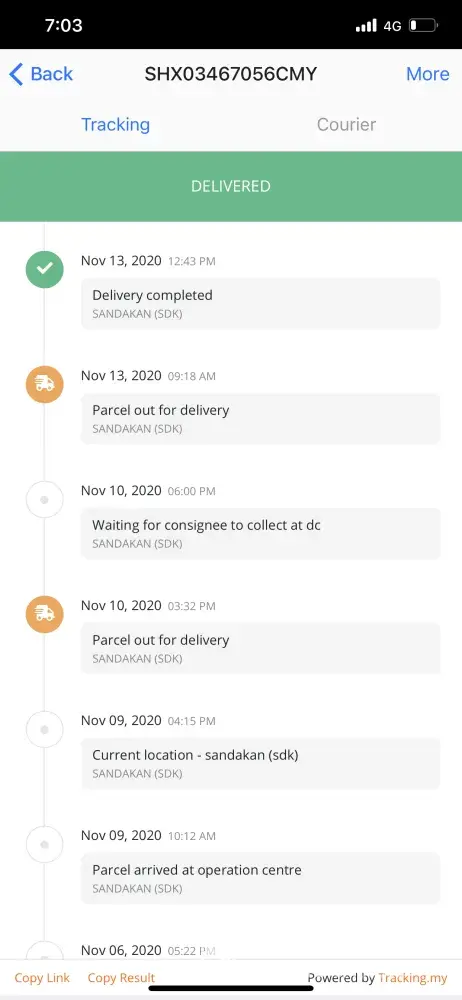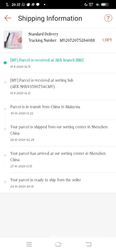 So, my parcel (SHX78029959CMY) reached UTS Logistics Sdn Bhd in Jalan Kolombong, Sabah on 21/10/2020.