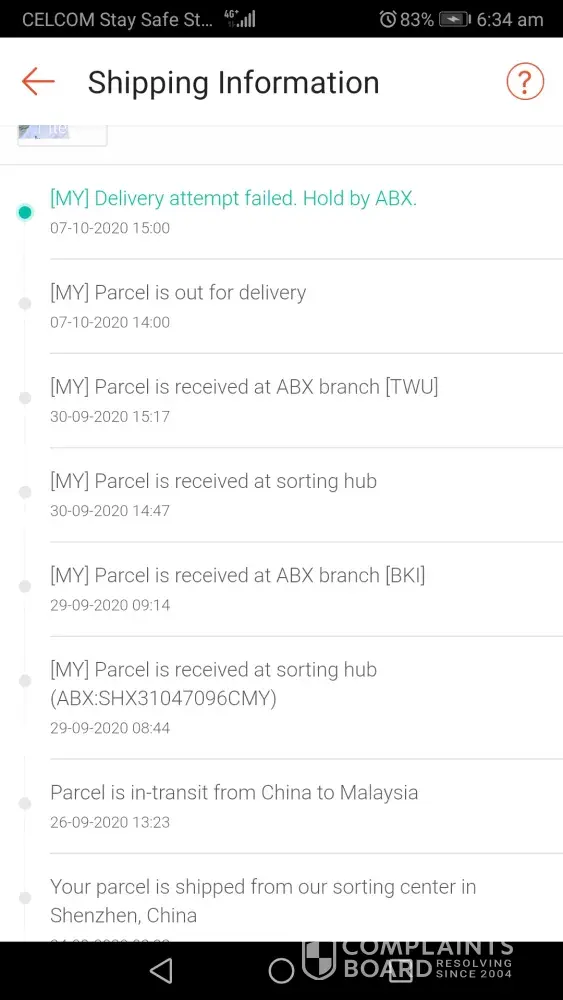 I do understand due to this pandemic covid 19 might have a delay but what make me so unhappy is when the parcel already received at the Kota Kinabalu sabah warehouse since 12/10/2020 which I may highlight to you its been past a week, but the abx still do not have any attempt to make out for delivery to my address. To my concern, why is that. Plus why did they only bothers to update curent location everyday in kota kinabalu? I may not be the pro in how you handling the parcel but usually on my past experience using abx, once received on 12/10/2020, they will attempt to make the delivery asap. Now, please make a update as im worried my parcel already damage (I do hope so much this do not happen) or my parcel are lost.