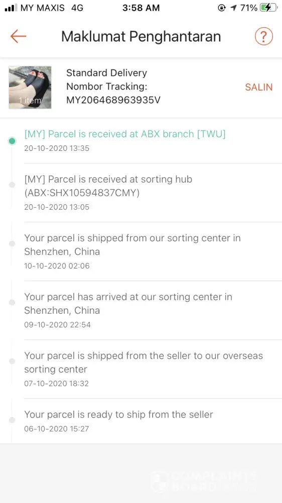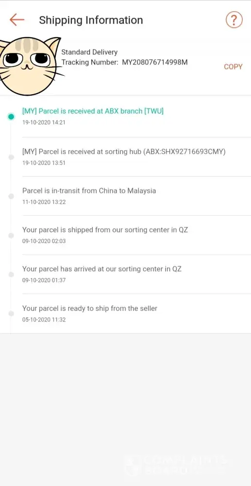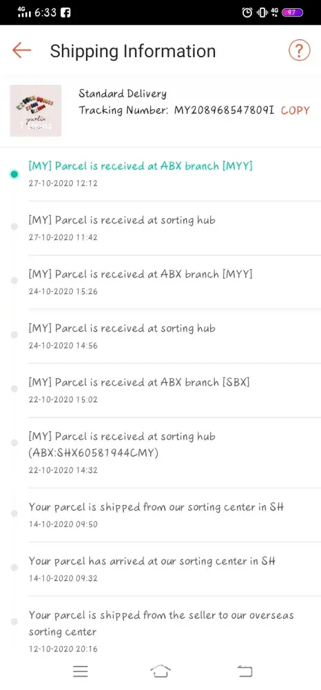 My parcel arrived on Oct 19th 2020. But until today Oct 29th, I still bot receiving the parcel. ABX courier not concern at all. should be fix the time, even in CMCO, other courier still doing great job, even poslaju. Pls, fix this problem.
