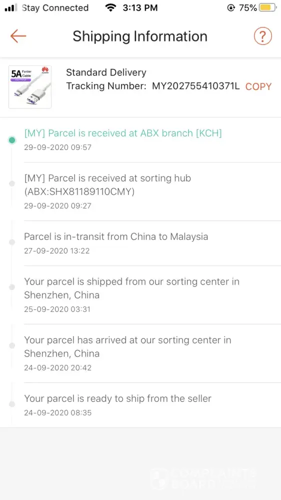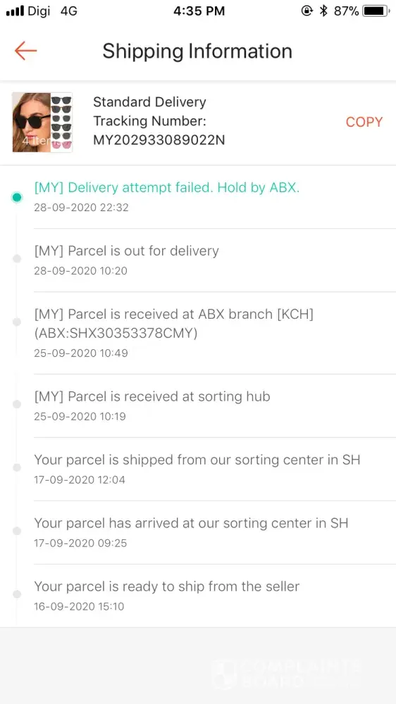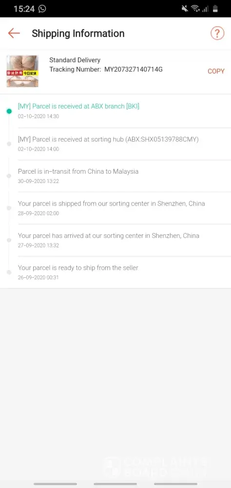 I complain about abx hold my items even though it, already in a kuching sarawak