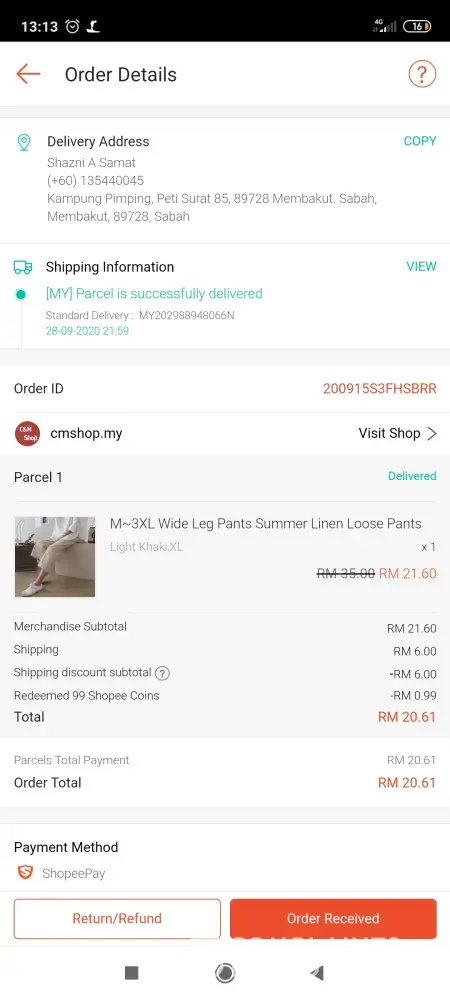 i did not receive my parcel (WWW000001306271) eventhough in the tracker said it was delivery successfully to me. It was supposedly handed to me on 05/10/2020 by abx kota kinabalu.But i did not receive anything and the fact that it said i already receive it, make me kind of disappointed of the service.