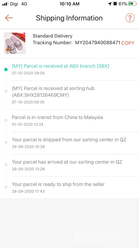 The seller really delivered the item so fast. Parcel arrived & received at ABX BRANCH BKI 28th September 2020. Today is 5th August 2020 and I still do not get my item yet. I just wondering why it take that long to deliver the parcel while it arrives early. I am so disappointed. I don't understand. Please improve your service. There more seller will use your courier service, but it really make us disappointed because your not responsible to do the delivery as soon as possible.