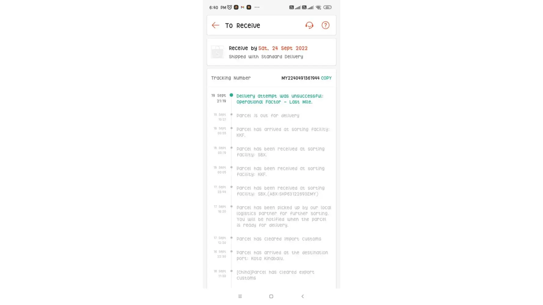 Hi this is my parcel tracking number SHP03990767EMY, the problem is it is said delivered on 5 september 2022, but until today 7 september there is no delivery is made.