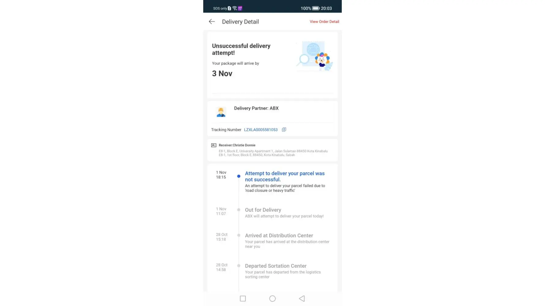 Pada 31 okt 2022 (isnin), sy ada mnghubungi ejen sembang langsung ABX berkenaan barang sy yg sudah sampai d operation center Kota Kinabalu. sy bertanya sekiranya boleh selfcollect barang sy d gudang ABX sbb sy perlu barang tu sebelum 2hb nov. Nama ejen tersebut ialah Faten, dia balas sekiranya bole selfcollect, pihak delivery ABX akan call. Tapi pd hari ini 1 nov 2022 (selasa), sy sangat kecewa dgn servis ABX. bukan 1 atau 2 kali sy kena mcm ni. attempt to delivery tapi langsung tdk sampai. hold barang sampai 3-4 hari tanpa bagi info dgn buyer. sangat teruk. sekurang2nya info dgn buyer. janji mau call utk info, sampai ke harini tiada apapa info. tolong perbaiki servis ABX pls. kurier besar kot!