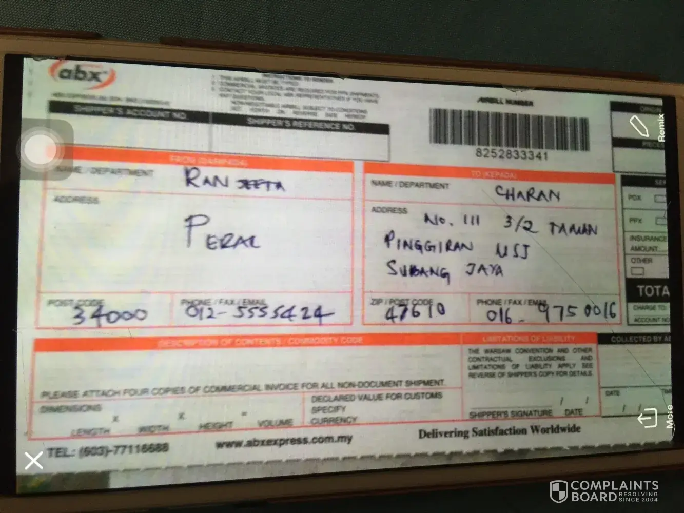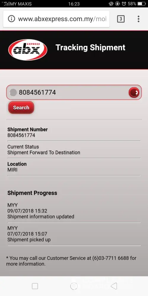 I already called to abx center and went to abx center at Kuching. The staff said will call me back after they refer to the driver. I wish feedback as soon as possible. My number is [protected] and email [protected]@hotmail.com