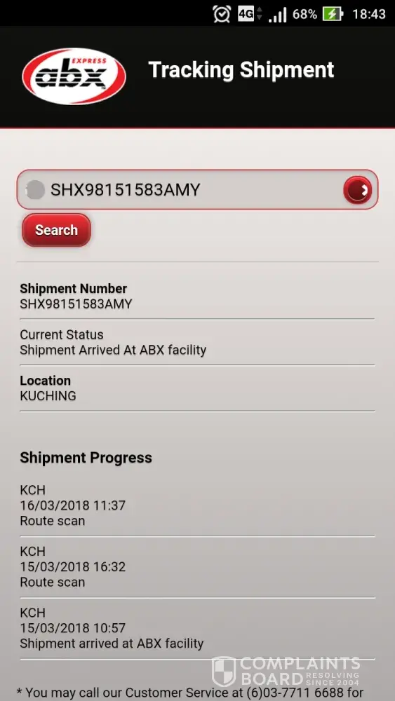 I've called to ABX HQ yesterday and called Kajang today to check my courier update. I've try to called because no body pick up phone. Yesterday I called ABX, he told me will arrive before 5pm and today I called again to Kajang braches, he told me they no driver to delivery the parcel and will reach my place before 5pm. But until now I still not received the parcel yet. I've try called to ABX and no body pick up phone. I feel very bad service for this, show give me a right way, if really can't delivery to me on time should inform me. I need my parcel urgently but ABX keep delay it for how many days.