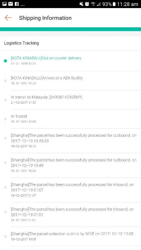 Hai.. saya sepatutnya menerima item tu 5/3/2018.. tp smpi hari ini sya call customer service.. item blom masuk warehouse (SHX97012796AMY)... setahu saya 1/3/2018 lg brg tu dh sampai Msia..2 brg sya smpi serentak 1/3/2018 dr China.. satu lg pos laju handle dan hari ini dh smpi Kudat Sabah.. Jd sepatutnya sya beranggapan yang Abx lebih Efficien dan pantas.. Kenapa?