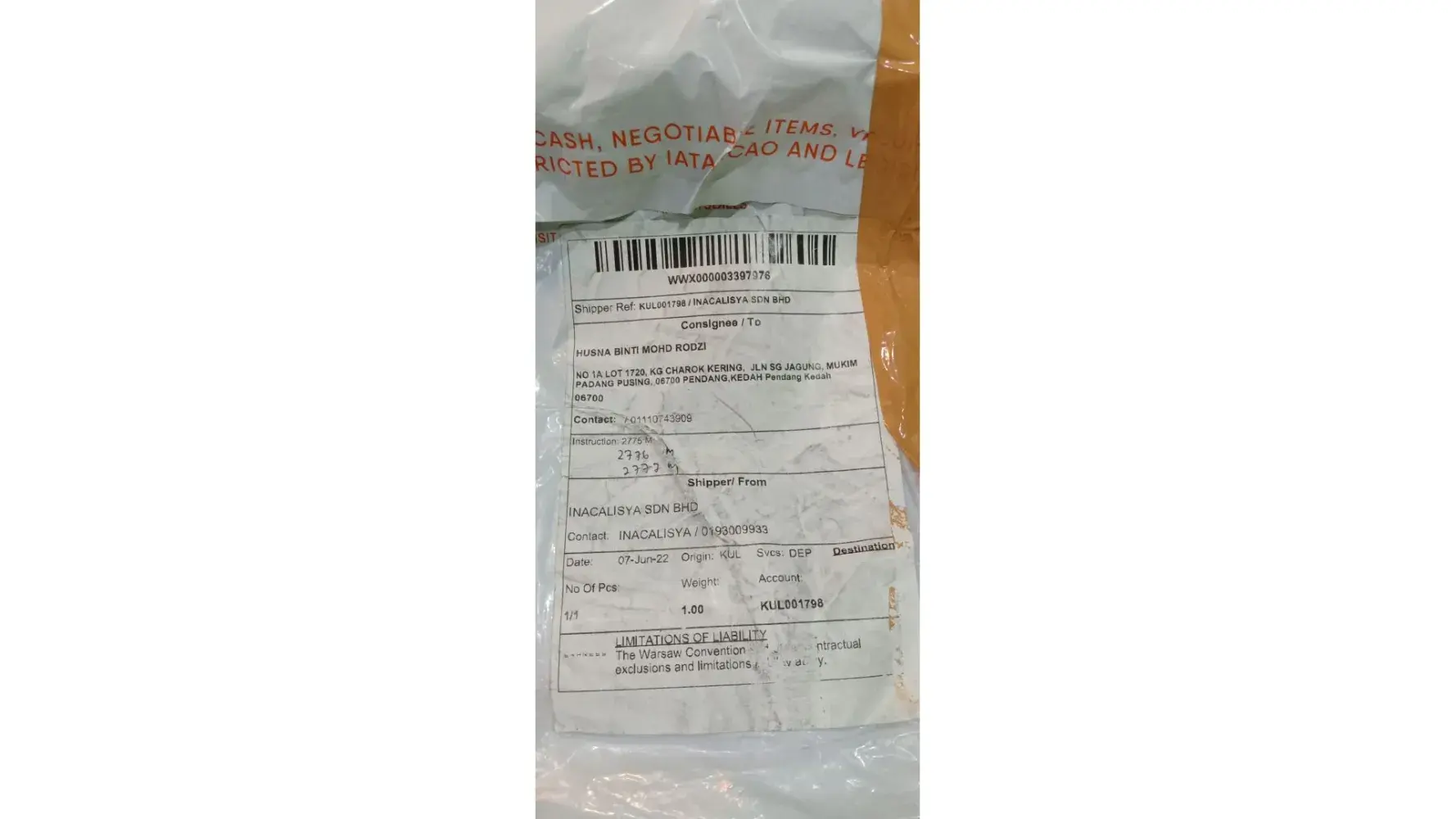 Menurut di dalam sistem barang sudah di hantar. Tetapi saya tidak menerima apa-apa barang pun dari abx.. Tracking numbar my221700917172f.