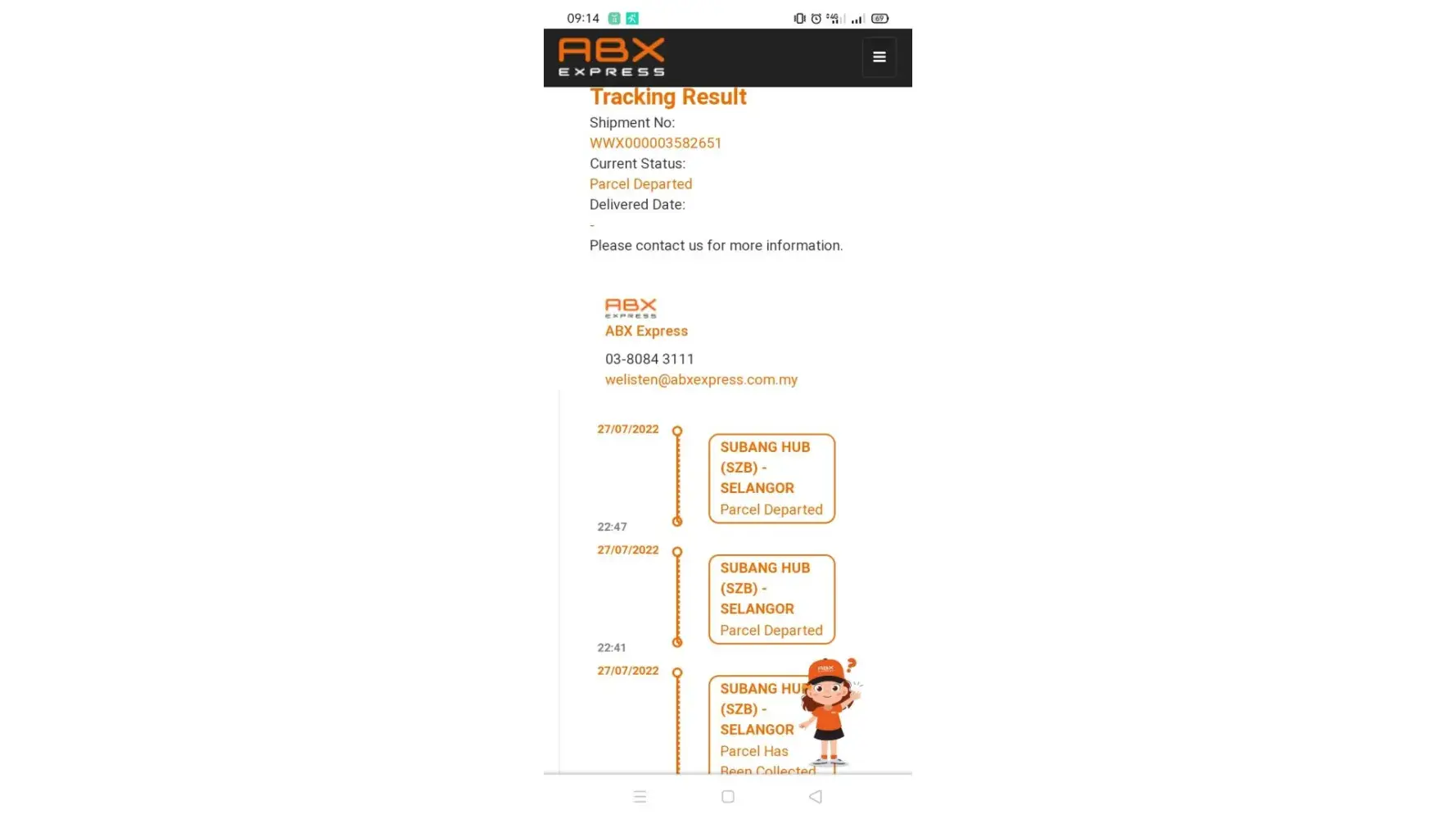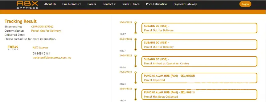 Order item from China. Tracking read that item has been received at ABX Kota Kinabalu. For 3 days no movement was detected for delivery. Courier service supposed to be fast and efficient. And this is not the first time I encounter this kind of delay. I tried many times sending email to ABX but failed.