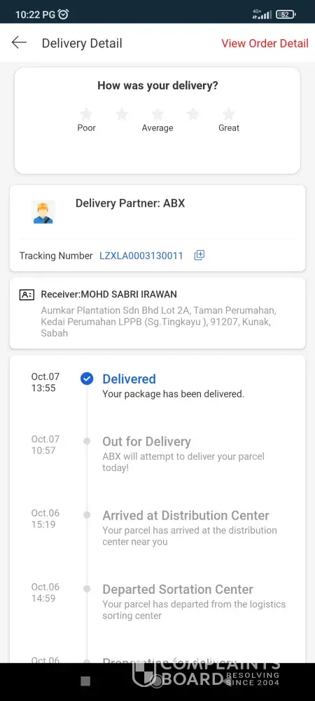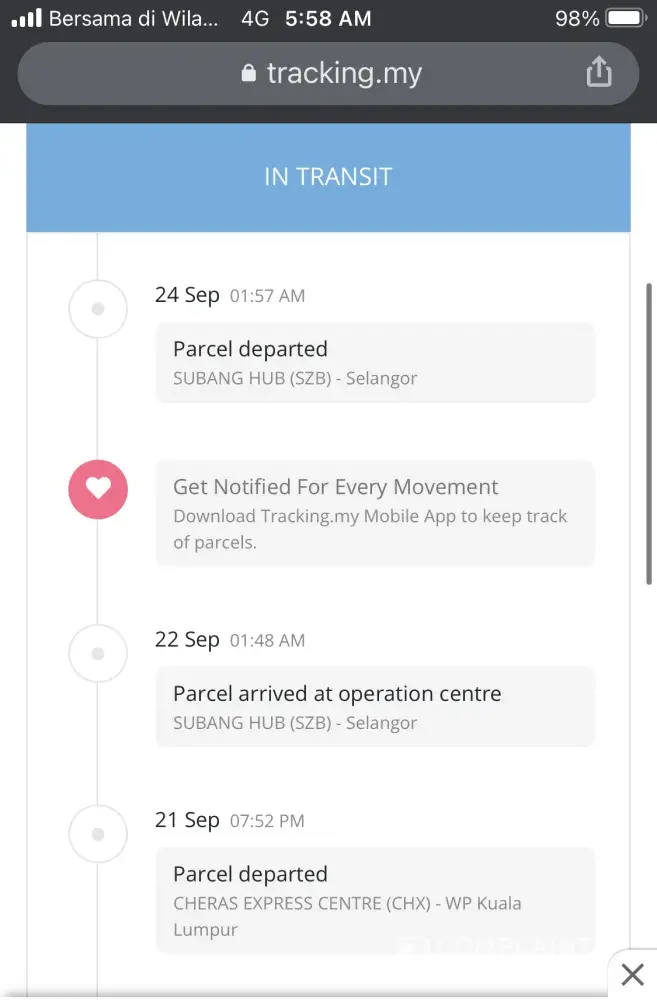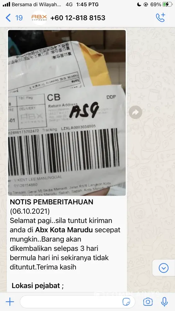 My parcel should be delivered by 5 oct... But until now its stuck for 4 days at abx kudat