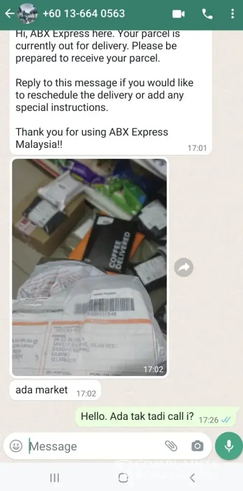 Disini saya ingin complaint kenapa pihak ABX KOTA MARUDU tidak menghantar barang saya sampai ke rumah padahal alamat sudah betul? Ingat free ke saya bayar untuk service penghantaran adoii