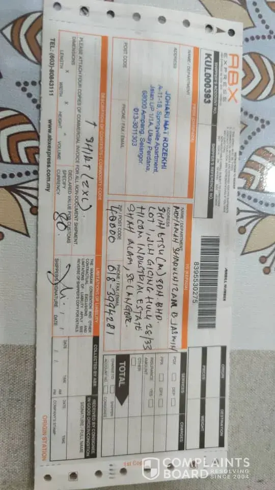 Pihak abx tidak menghantar barang ke rumah