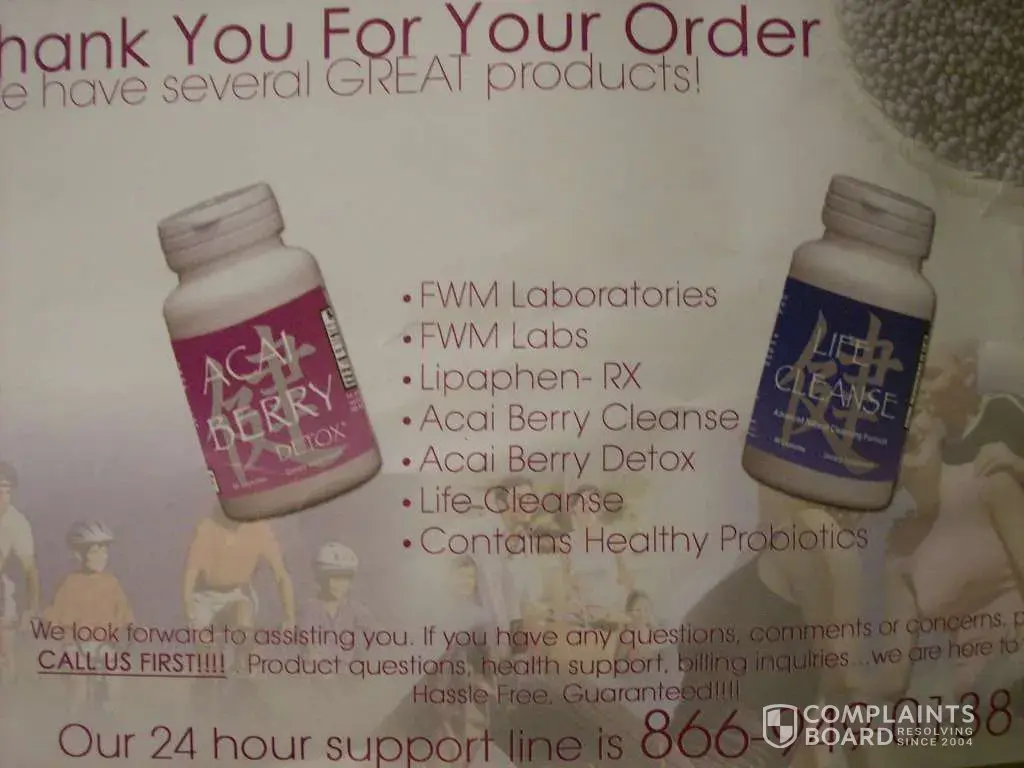 Call them to cancel..they say read the small print..well I did..their small print says Customer may return product within 30 days of purchase date for refund minus ship and handling. FWM wouldn't acknowledge their own small print. They wouldn't give me a RMA number saying that I didn't call during 14 day trial period. WRONG...I called my bank and they reviewed FWM's website and read the small print saying. Refund within 30 days of purchase date. Wells Fargo rep intiated a three way call with FWM. Well Fargo rep read small print to Acai Berry Rep. After asking 5 plus times...Acai Berry/ FWM rep gave in and I have sent product back with RMA number. This company doesn't read their own small print...Wells Fargo and I did.