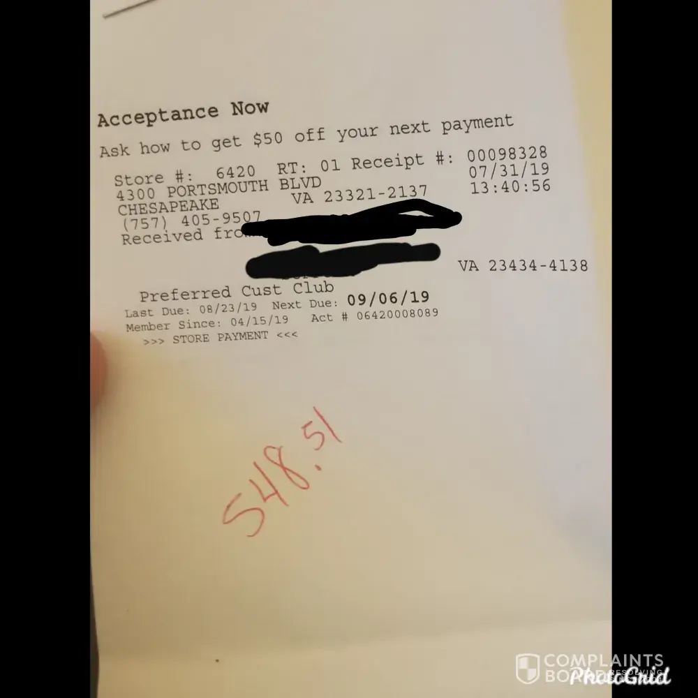 They need to switch there 90 days policy rules if people are coming in with cash in their hands take the money because they are still making payments on their items, credit card ask well and their computer system need to change and you can clearly see I am back on every 2 week again.