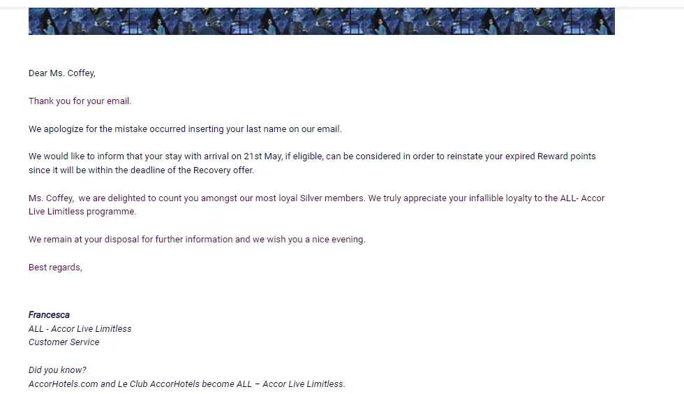 On March 4, 2022, i received an email from Accor Plus to renew my membership only Rp 2.280.000 for 2 free nights. So I called the sales agent & asking for the explanation. She said the the email was mistyping. I can understand the human error of mistyping but I want an email to explain that the previous email because of mistyping.