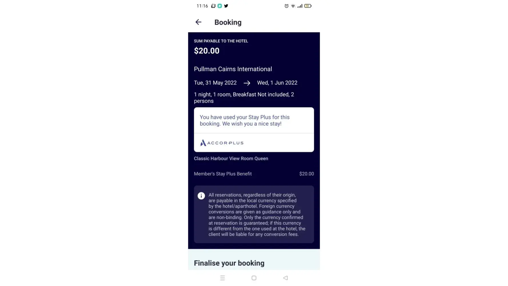 It's been difficult to use the free night, we used the card for a family of 5 no real discount. We tried to use the free night but the hotels we wanted to try in our local area did not accept member's plus free night, the one's we did find only let us have 2 of the 3 kids. So we hired a sitter and booked to stay at the international Pullman on the 31st. However they cancelled the booking stating that our membership expires on the 31st May 2022 so they would not allow us to stay the night of the 31st. 30 minutes on the phone with support got no were. The offer was pay another year and we will extend the free night, this didn't sit well. I emailed support with proff but herd nothing so our free accommodation night was out and the evening away ruinned. 7 days later I got a reply email with the same crap pay for another year and we will give you a night. I asked them to answer the questions about why they cancelled my booking, but as I type this no reply. I Just want to warm other people if they are so petty over a day what sort of company really are they. I expected better my card expiration was the end of the month, some in customer service needs to inform there over seas staff that may has 31 days not 30. I have attached photo below