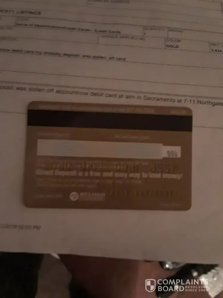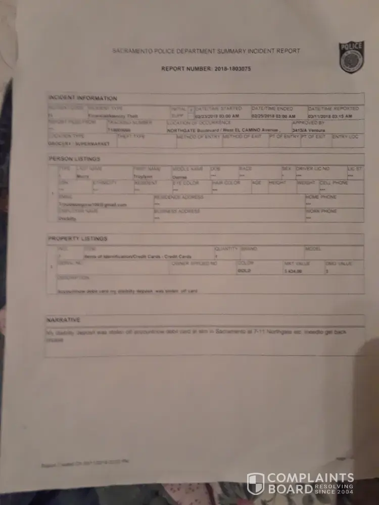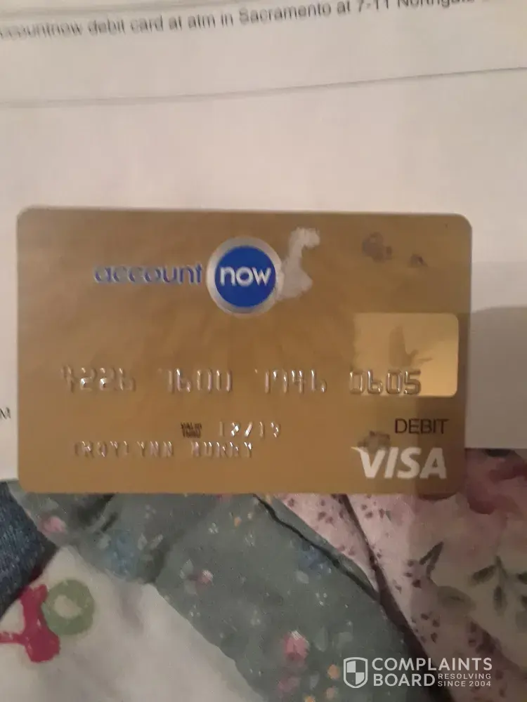 A few months ago I had charges I didn't recognize. I was denied dispute. In january 15, 2018 I was waiting for new card but received a statement with the last four digits of a card I had reported and was closed this card had my disibilty deposit on it and. When I tried to update the pin number accountnow gave me hard time with false information and wouldn't update pin. In february 23, 2018 my disibilty deposit was stolen off the same card that I reported that came in the mail on a statement with the last four digits of a card I had reported and was closed. Accountnow debit card denied dispute. I'm disabled, i'm humiliated need help getting my funds back please. Photo of the cancel card ending in 0605 that I had in my pocket when disibilty deposit was stolen off accountnow debit card, and police report