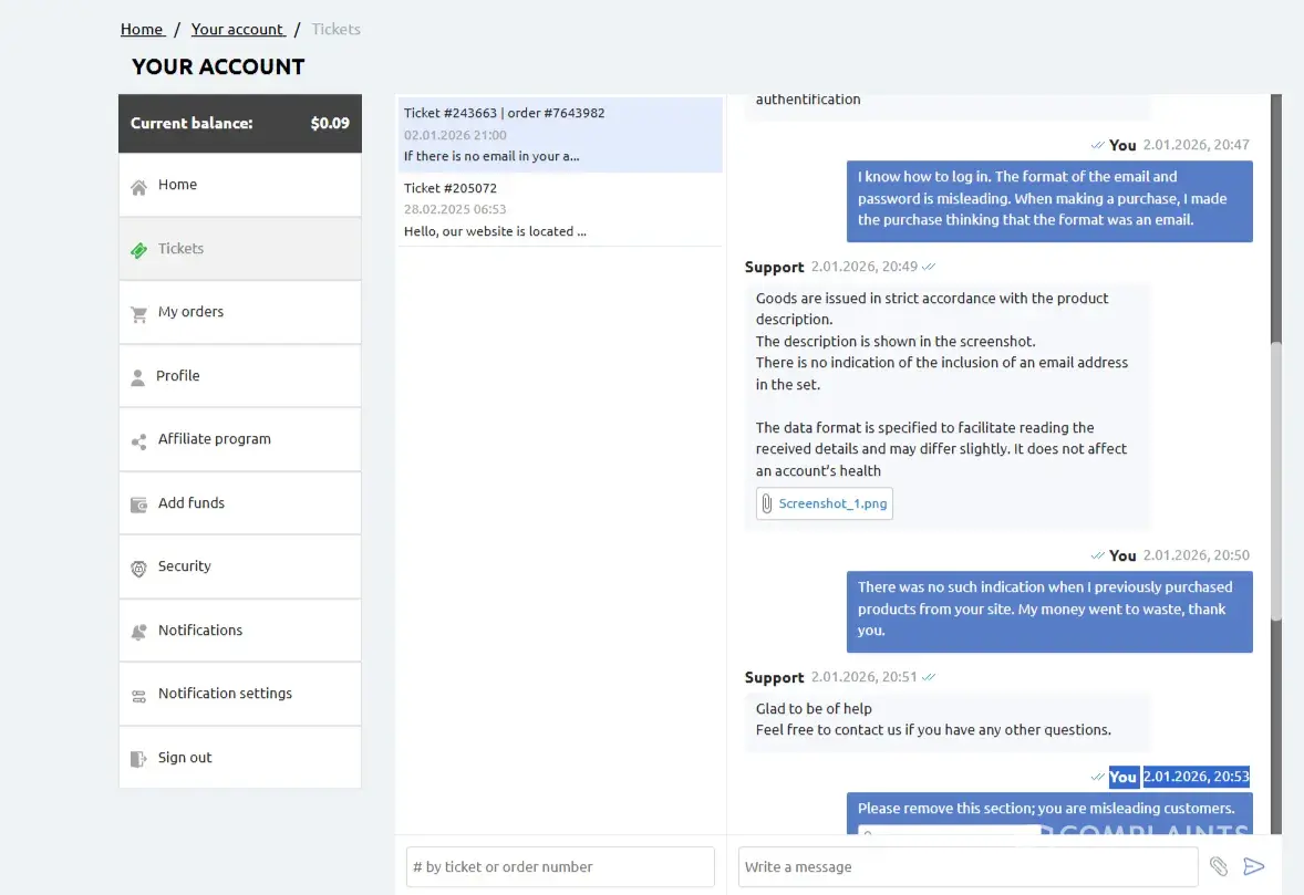 I purchased Instagram accounts dated 2019. The listing stated the format as follows: login:password:email login:email password:2FA code:backup codes (code_1, code_2, code_3, code_4, code_5) However, when I received the products, the accounts were delivered in the following format: login:password:2FA The delivered accounts do not match the format described...