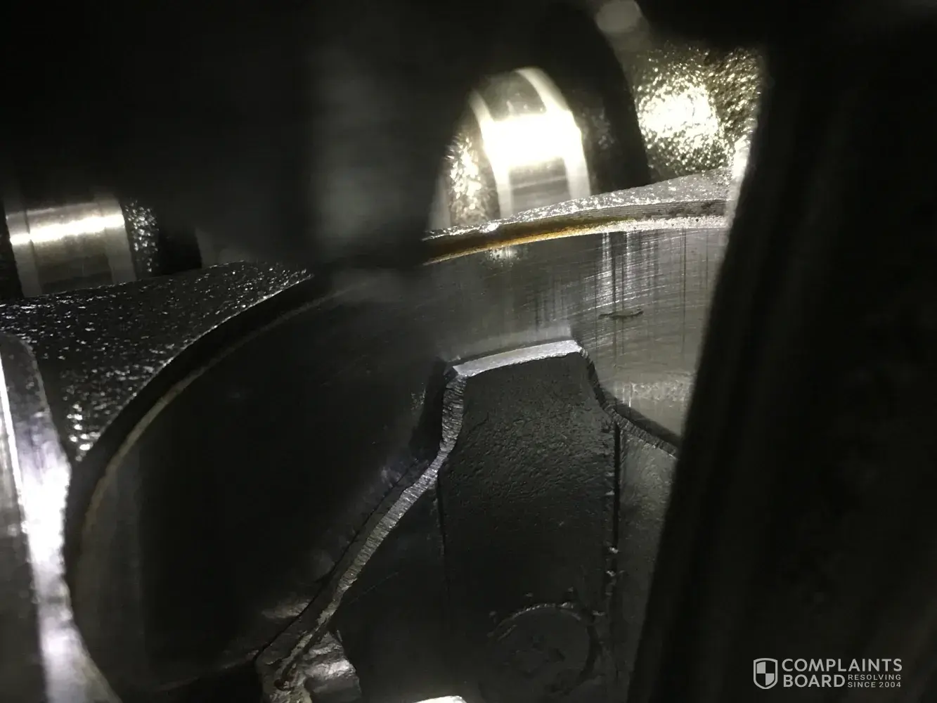 The pics are of my second motor that Accurate sent but the mechanics won't install. Scarred cylinder walls, debris in the oil pick up screen and it's cracked. Milky oil in the oil pan with metal flakes and that's just what I have so far in pics. Stay away from these con artists.