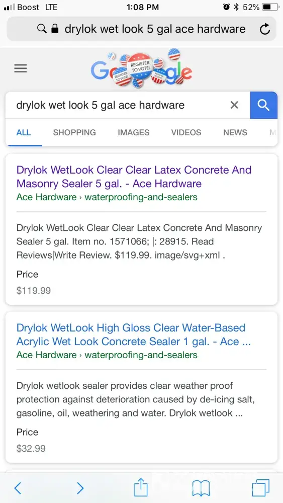 I plainly googled a product #1571066 drylok wet look paver sealer high gloss $119.00 but once u put item in cart it changes to $129.00 same product number and info as advertised, I was asked to send a screen shot as if I was lying, no reps at customer care even attempted to assist advised to call back once they reviewed email. This is ridiculous I've never wasted so much time trying to order a product, I even contacted a store they referred me to the customer service line #Dissapointed in this hardware company not the 1st time given miss info.