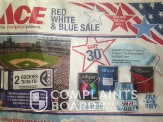 You've lost a Ace Hardware and Valspar customer. This should have been simple for Ace to show some discretion and honor or to be more clear in your ads and flyers.