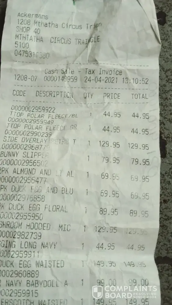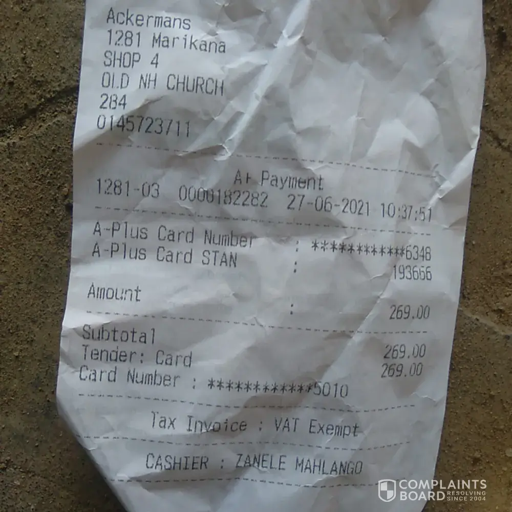 Desired outcome: Ackermans must cancel the debt because I do not owe them but they owe me