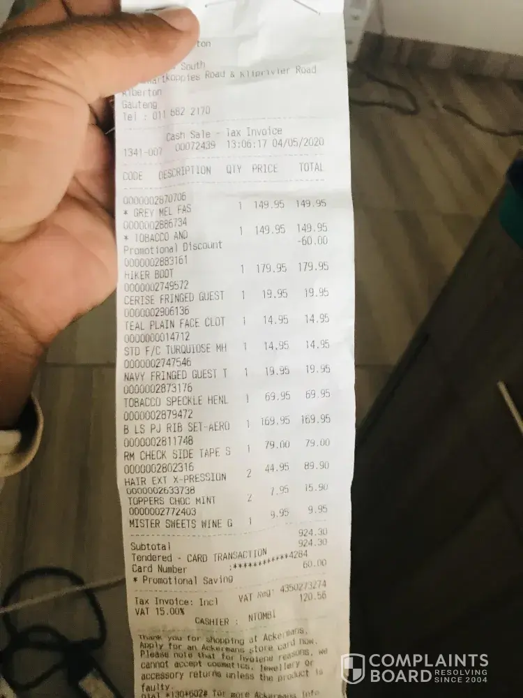 I have been a customer at Ackermans for over a decade and therefore feel that I deserve better treatment than what I have experienced today.