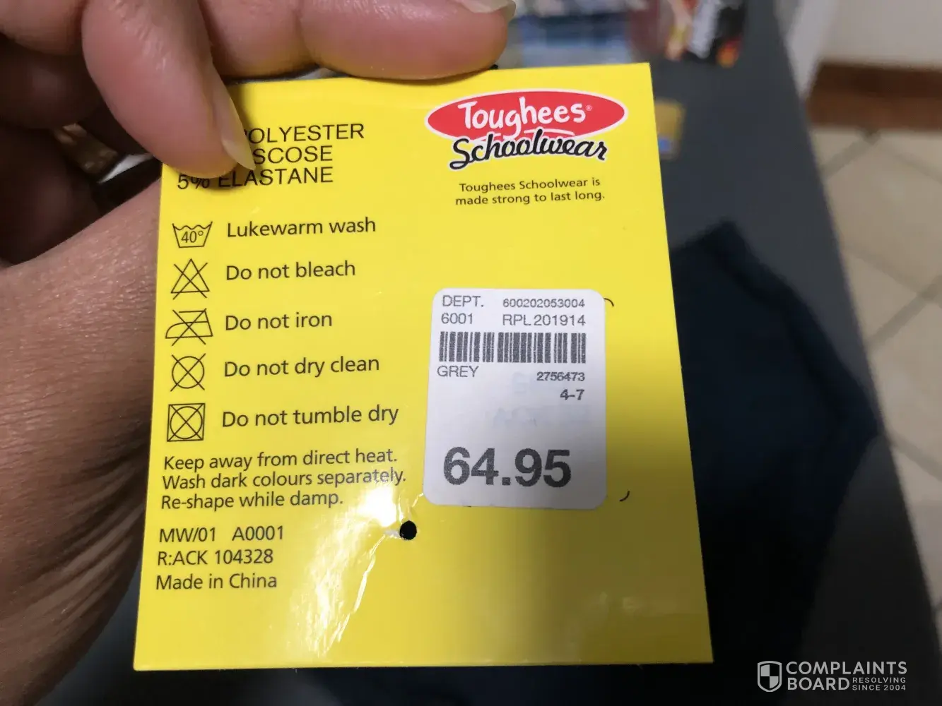 After returning it on Monday to swop we where advised that there where no label atached.