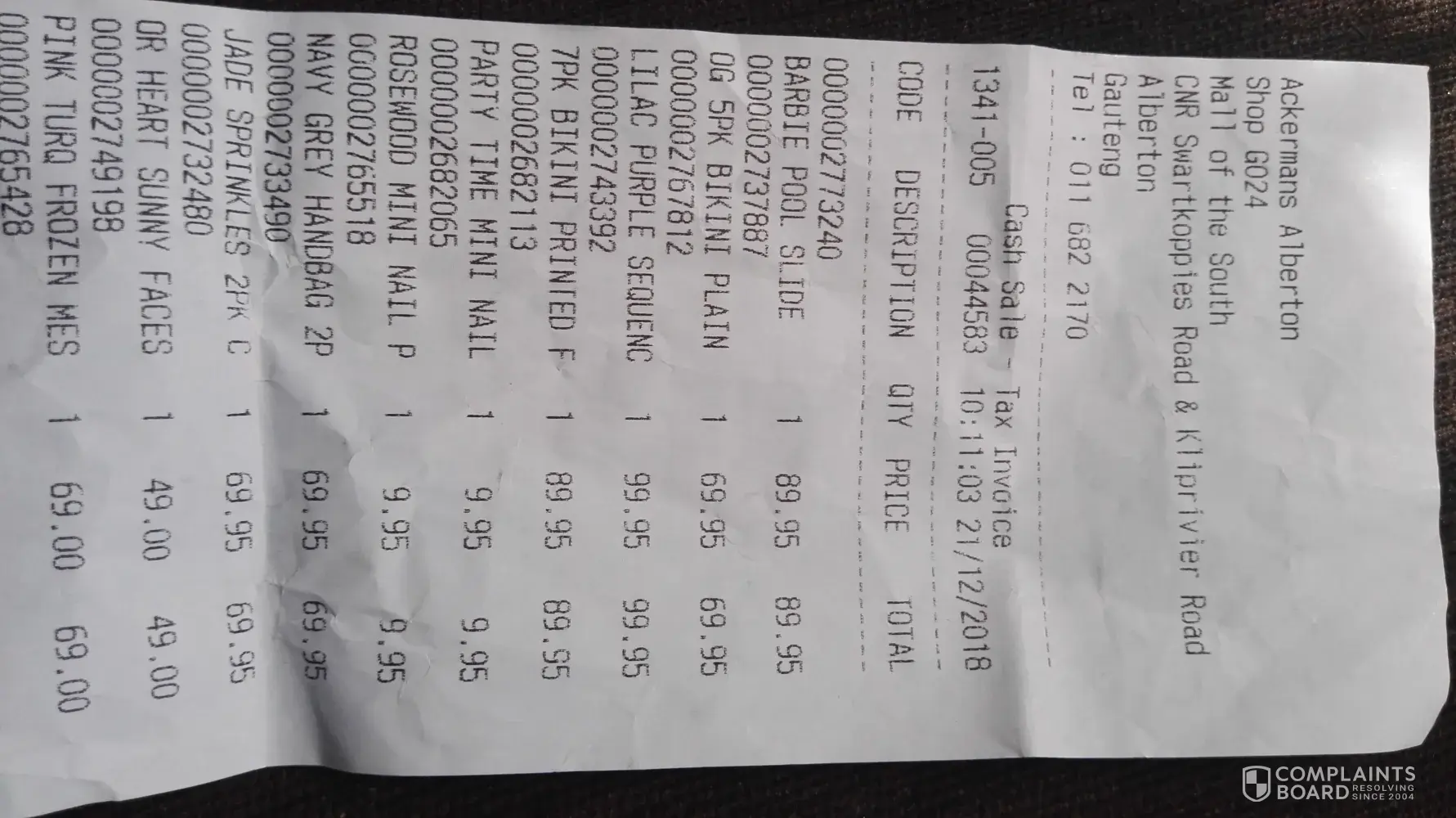 I purchased a pack of bikinis for my teenage daughter at mall of the south Ackermans... two days later whe she opened the pack 2/5 of the panties were torn and the 3rd is also detached from the seems...the underwear cost R69, 95 and only two panties are off quality...I still have till slip but did not go to the shop because my daughter already wore two of the panties.