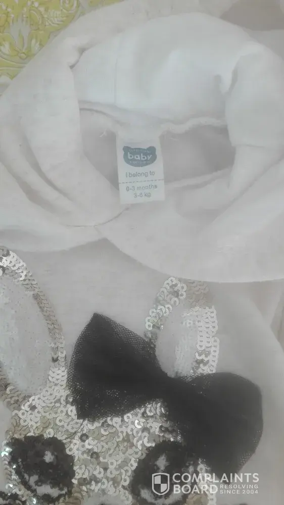 I bought a track top for my new born baby, it looks very nice with cat face sequence in the front and a hoodie. At 7 weeks my baby is only wearing it now as it's 0-3months in size. I noticed the sequence was rough and not going in the same direction. After wearing it once she had scratches on her face and her blanket pulled by the top. Knowing that this was being made for infants, Ackermans should have paid more attention to the quality of the clothing to ensure safety for our lil ones. I am pretty sure anyone else who bought it is sitting with it at home unable to put it on their babies.