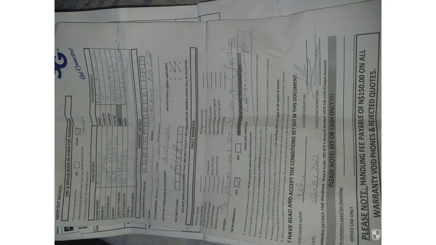 Having a complaint of a phone I brought in Ackermans Tsumeb Namibia it's A03core on 08.09.2022 and not even long have I stayed with the phone and it started freezing, I complaint to the manager but they just to me they will give it in to 3g .but when they send in the phones the phone came the with same problem,please help I don't get enough customer care in Tsumeb Ackermans. [protected]