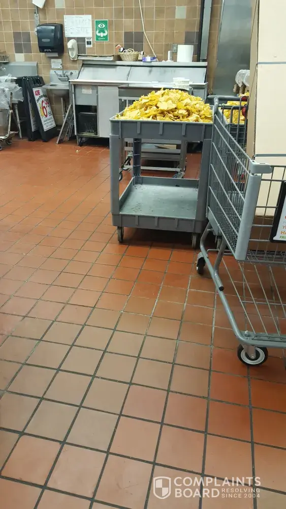 Good afternoon. I am a frequent visitor to the Acme in Easton MD. On Friday morning, I went to get some food from the deli and witnessed a very dirty and concerning kitchen. One of the deli workers wheeled out two very dirty carts filled with tortilla chips. There was no cover on them and the bottom of the cart was filthy. The floor was gross and the background appliances were horrendous as well. I have attached a picture. I will not be shopping here again anytime soon unless this issue is addressed.