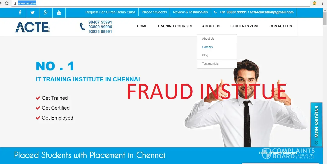 Fake reviews in there website and Fake reviews out side as well. Donot trust ACTE . They have no proper facility and no proper trainers . I lost 28000 by attended only 9hrs of class and they are refunding it .