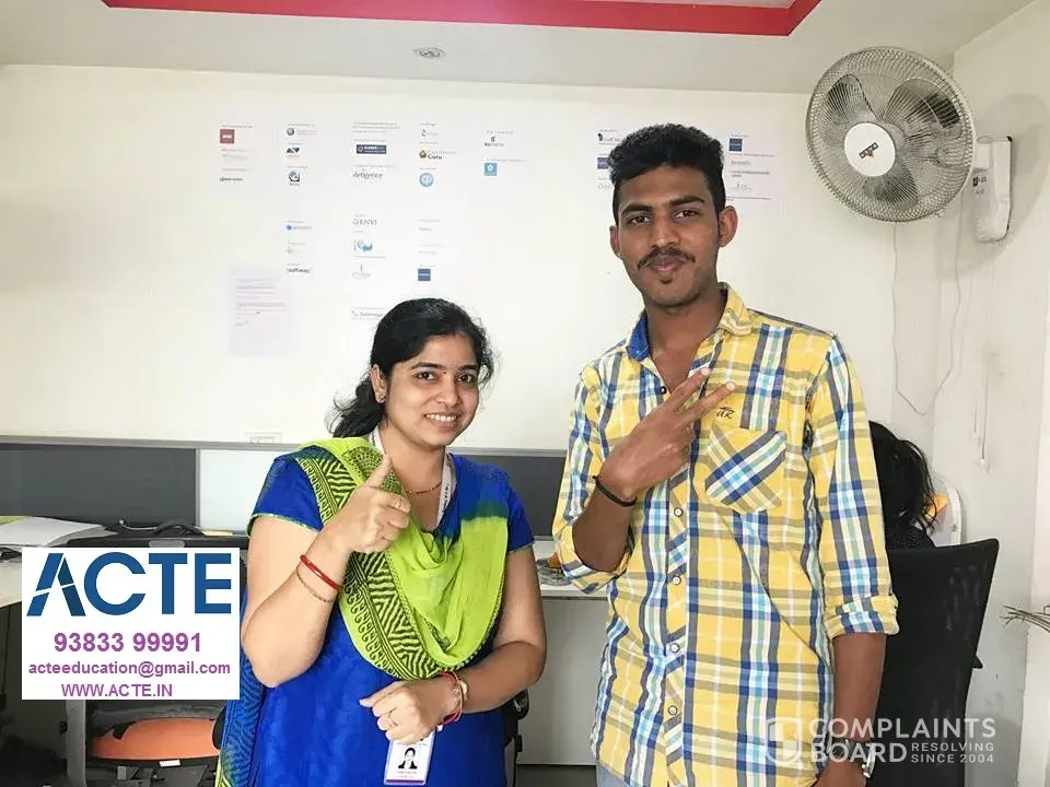 gained from that course met industry standards which helped him to clear the rounds with confidence. ACTE will definitely provide all the opportunity to get placed we should attend all the classes at last we will definitely get job. finally I would like to say thank to all the ACTE trainers, founder, cofounder.thanks to ACTE.Training and placements provided by ACTE is really good for a fresher.