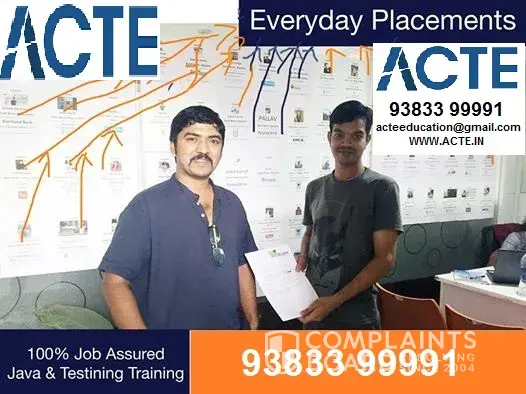 Acte education velachery is the no:1 fraud cheating institute located in velachery chennai. They are cheating students in the name of placement I also got cheated I lost 20000 rs. Beware of these scammers.