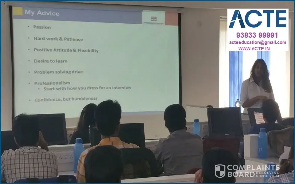 ACTE Fraudulent Training Institute: Don’t believe this training institute, I am sure all the good reviews here are fake. They get the whole money for the training from the students, saying that we need to pay the trainer after then we shall allot the batch. But they don’t and they cheat us. Bunch of liars from the bottom to the top in this institute, I meant all the branches of ACTE.
