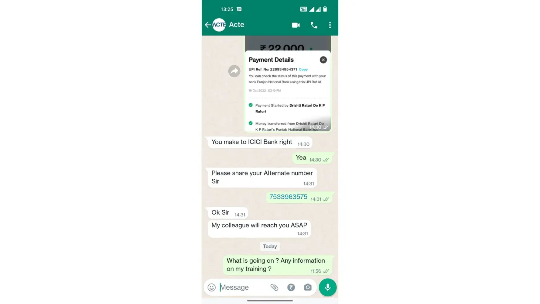 ACTE is a fake and fraud company, they charged amount and didn't provide any training and not responded to emails. Dear Job aspirants don't trsut ACTE. I paid in Sep 2022, and these guys didn't respond to my emails also.