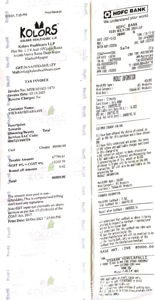 but I'm loosing my weight and I got health issues, then I consult my doctor he asked me about the treatment and Every thing I explained to him then he told sto the process immediately are else you will get health issues and it will effect for heart he told then I stoped my sessions and stop EMI process also but there is no response from them. so please help me to stop this and transfer my amount to bank