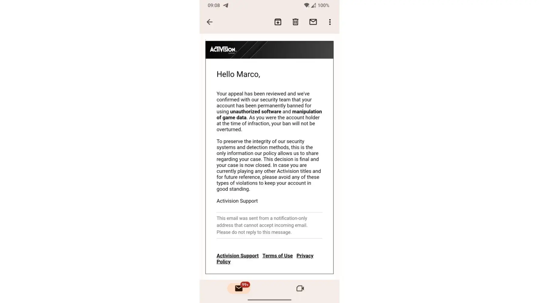 In relation to the message i received on my activision account stating that my account "has been permanently banned for using unauthorized software and manipulation of game data" (case number [protected]) and that my ban will not be overturned is completely unfair for someone who has paid the full $140 for the game not just on pc but also on ps5, amounting to nearly $300 and has never run any type of cheating software on my PC or any PC for that matter.