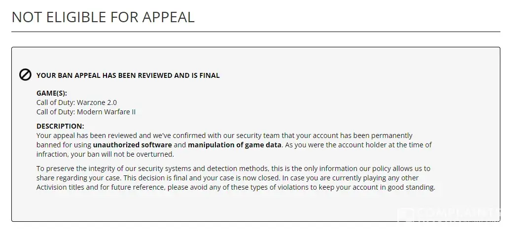 I am writing you because I got banned earlier this morning for Warzone 2.0 and Modern Warfare II.