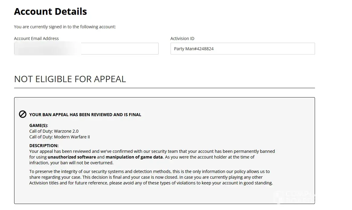 In relation to the email sent at 04:20 AM on the 27/10/2022 stating that my account "has been permanently banned for using unauthorized software and manipulation of game data" (Activision ID Neidier#6820950) and that my ban will not be overturned is completely unfair for someone who has paid $69.99 for the game and has never run any type of cheating software on my PC or any PC for that matter.