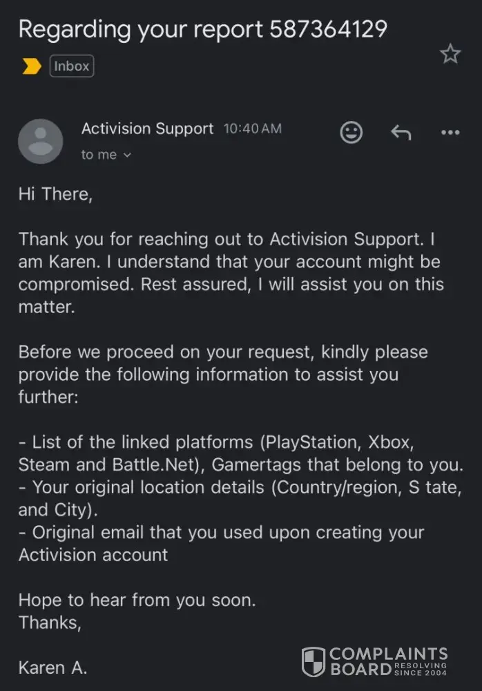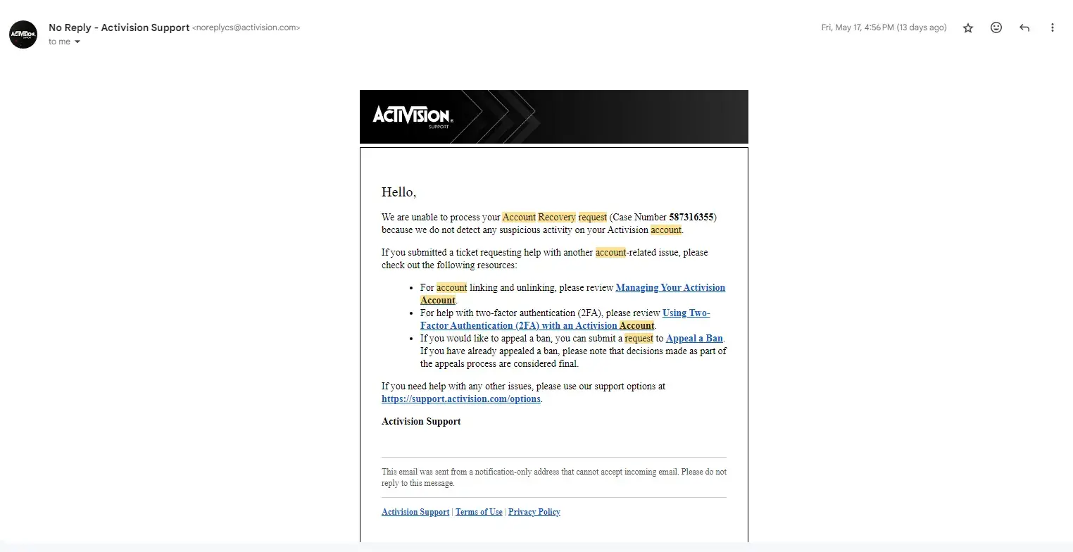 Activision support case: [protected]